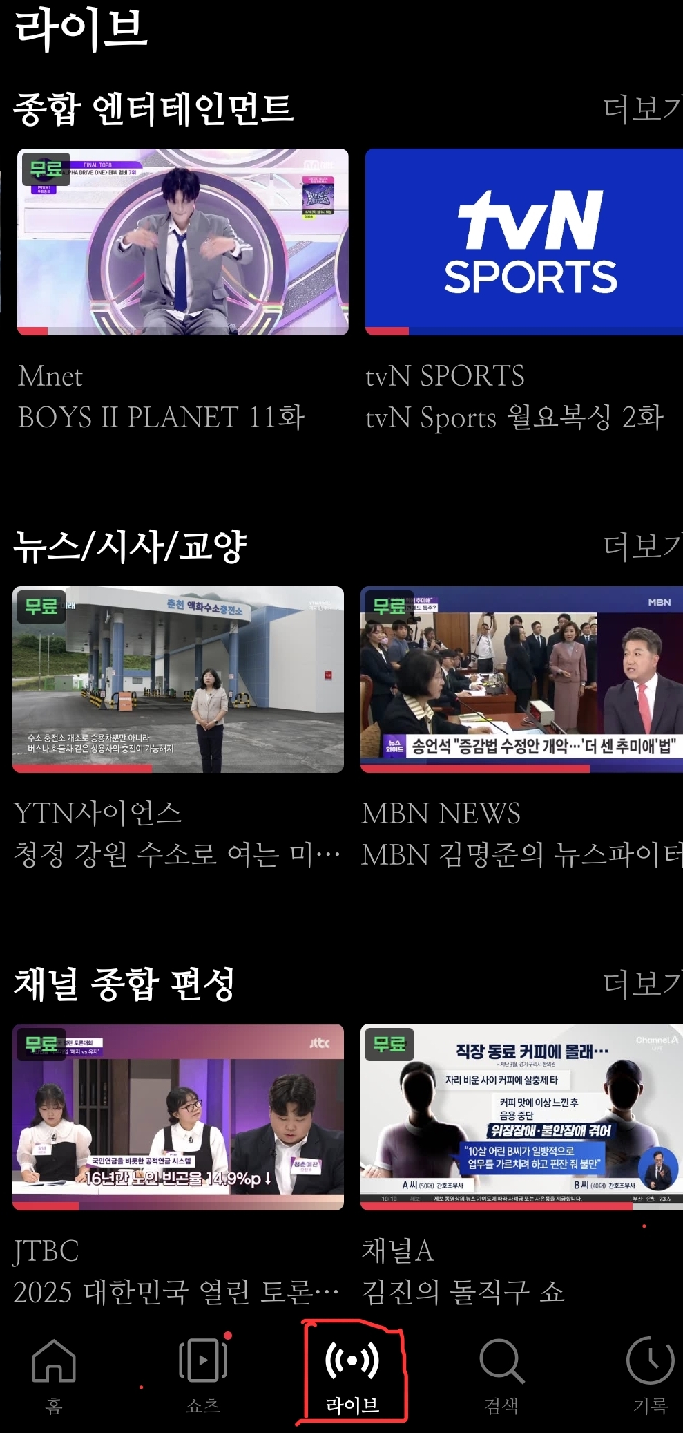 다른 무료 실시간 채널들도 많이 있으니 둘러보시기 바랍니다.
