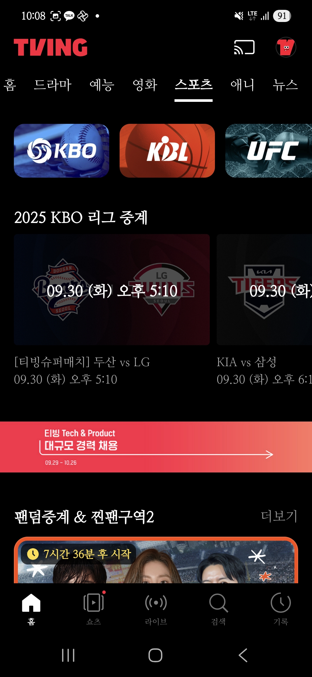 <tvN Sports 온에어 TVING 시청하기>